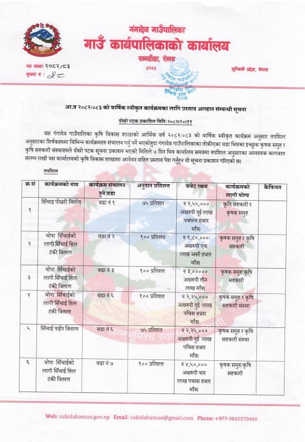 आ.व. २०८२/०८३ को वार्षिक स्वीकृत कार्यक्रमका लागि प्रस्ताव आह्वान सम्बन्धि सूचना