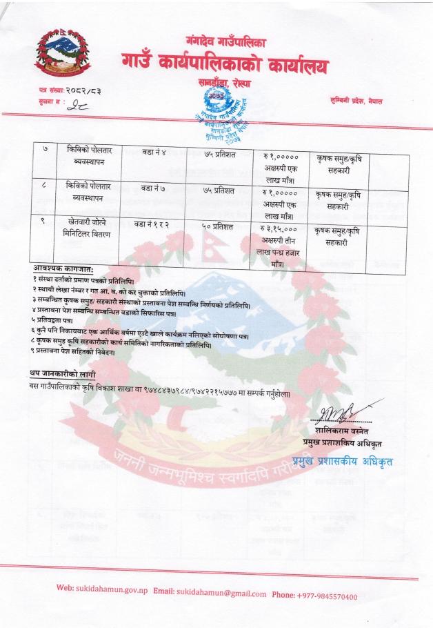 » आ.व. २०८२/०८३ को वार्षिक स्वीकृत कार्यक्रमका लागि प्रस्ताव आह्वान सम्बन्धि सूचना