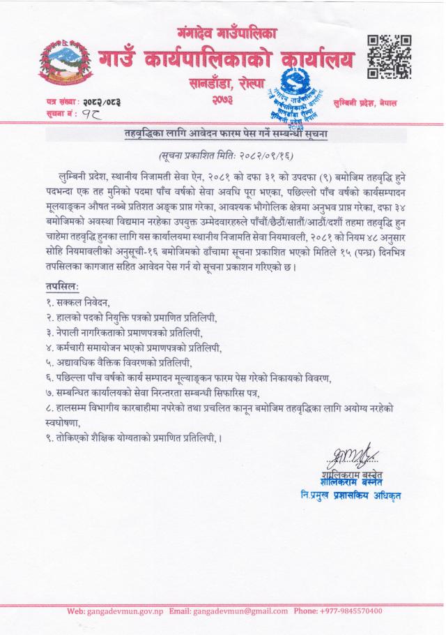 तह वृद्धिका लागि आवेदन फारम पेश गर्ने सम्बन्धि सूचना