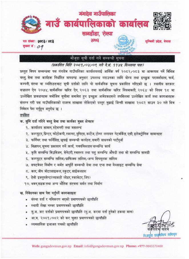 मौजूदा सूची दर्ता गर्ने सम्बन्धी सूचना