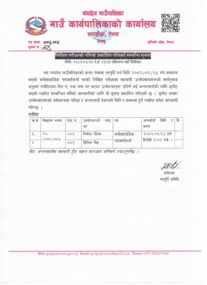 » लिखित परीक्षाको नतिजा प्रकाशित सम्बन्धि सूचना