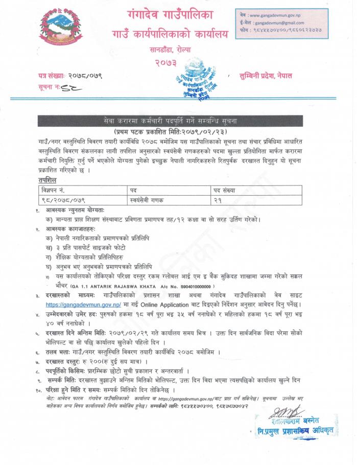 सेवा करारमा गणक कर्मचारी पदपुर्ती सम्बन्धि सूचना